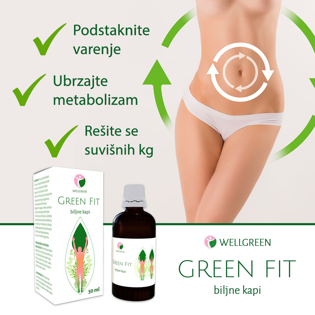„Green Fit biljne kapi deluju tako što izbacuju višak tečnosti iz organizma, smanjuju otkele noge, pomažu kod celulitisa i ubrzavaju naše varenje.“
